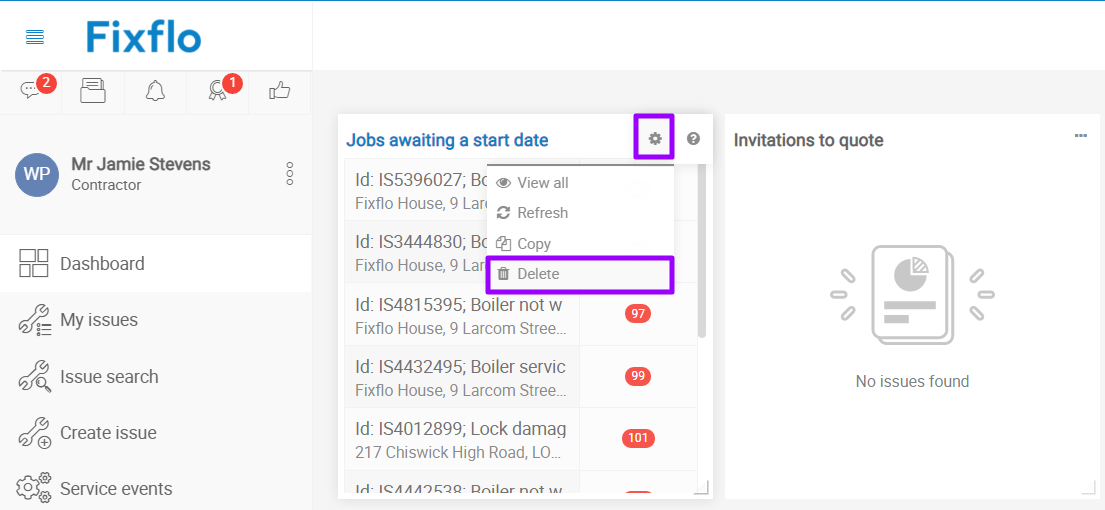 As a contractor, you have a login to your account to manage your jobs. The best way to manage this workload is via your dashboard; this provides full visibility of everything going on in your system.