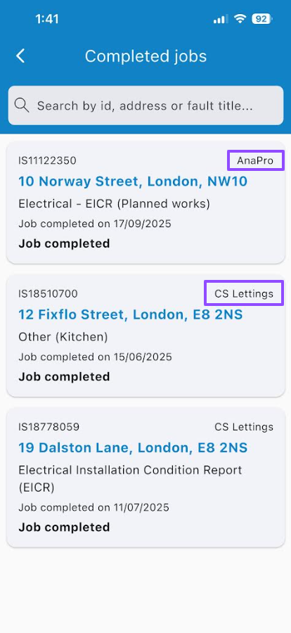 If you are working for a number of agencies that use Fixflo and want to be able to see all of your jobs in one place, you can add each account to the contractor mobile app.